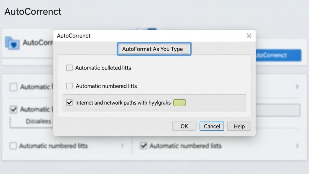 이건 워드의 ‘자동 고침’ 기능 때문인데, 아래 경로에서 영구적으로 비활성화할 수 있습니다.