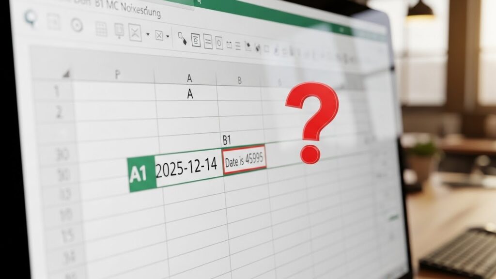 예를 들어 A1 셀에 ‘2025-12-14’라는 날짜가 있다고 칩시다.
