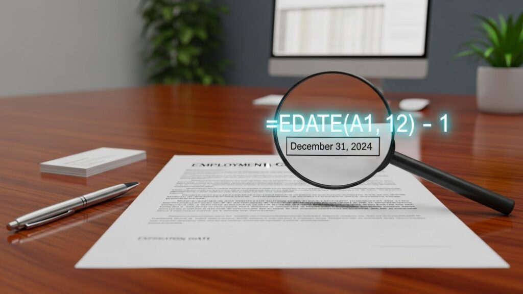 | 실무 정답 | =EDATE(A1, 12) – 1 | 2025-12-31 (⭕) |