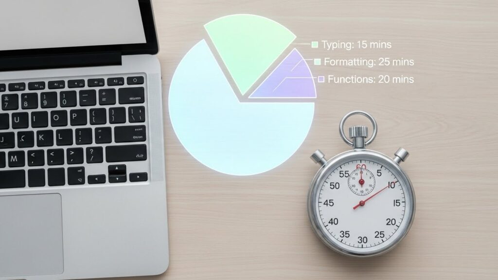 무조건 오타 없이 빠르게 치는 게 생명입니다. 제목 도형, 결재란까지 완벽하게 끝내세요. 함수는 건너뜁니다. 빈칸으로 두세요! -