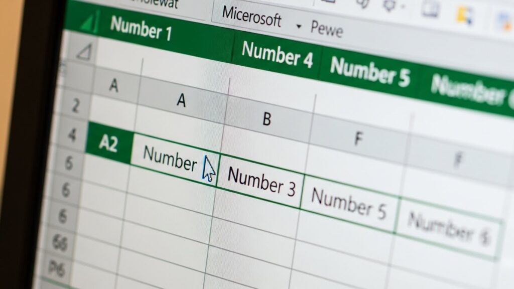 빈 시트에 A열부터 F열까지, 1번부터 6번 공이 들어갈 자리를 만들어주세요.
