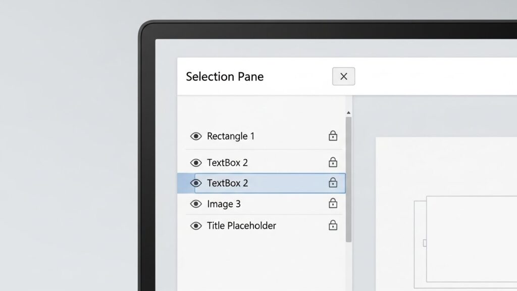 이 유리판(개체)들의 순서를 바꾸거나, 잠깐 안 보이게 숨기거나, 이름을 붙여줄 수 있는 컨트롤 타워가 바로 ‘개체 선택 창’입니다.