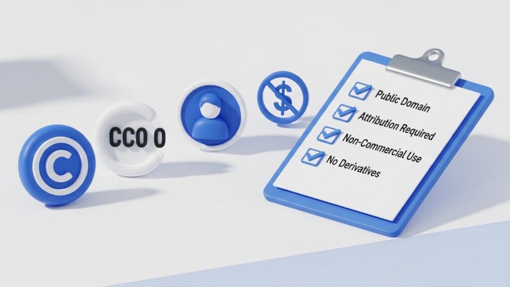 1. CC0 (Public Domain): 저작권 포기. 출처 표기 없이 상업적 이용 가능. (가장 좋음)